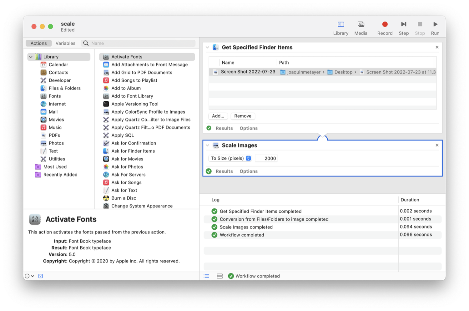 Descubro un programa que en macOS (solo en macOS) se conoce como Automator que nos ayuda a automatizar tareas, investigando mas sobre su uso creo una herramienta o mejor dicho un script / ejecutable que hace por nosotros el trabajo de redimencionar y cambiar la extencion de todas las imagenes en un solo click. Y si quiero renombrarlas de una forma más organizada? También!