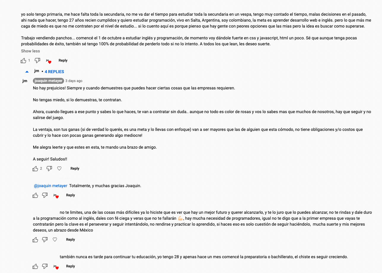 Me siento en la computadora y veo que una persona me hace el siguiente comentario que ven en la imagen en uno de mis videos de YouTube en el que comparto y hablo sobre el tema de empezar desde cero y efecto dominó…